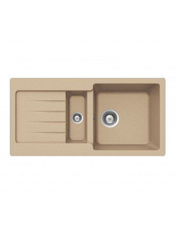 Praktický kuchynský drez je vyrobený z granitu a je vo farebnom prevední topaz, ktorá skvele zodpovedá súčasným náročným požiadavkam zákazníkov, ktorí si vyžadujú kvalitu, pekný dizajn a výhodnú cenu. Pre prevedenie Tegranit je kvalita na prvom mieste a majú tvrdosť, odolnosť a vzhľad prírodného kameňa kombinovanej s flexibilitou a jemnosťou moderného granitu. Sú vyrobené z prírodného granitu a malých čiastočiek skla (80%) skombinovaných s tvrdenou živicou (15%) a farbivami (5%) na jemný materiál s tvrdosťou skaly. Táto konzistencia je výsledkom výrobného procesu, pri ktorom dochádza ku stláčanie a zahrievanie kryštálov kremeňa tak dlho, až sa vytvorí kontinuálne hmota. Výsledkom tohto výrobného procesu sú granitové kuchynské drezy s jedinečnou textúrou a veľkou hĺbkou. Takýto drez je o 30% svetlejší než kameň, takmer sa neopotrebováva a nevybledne. Pri správnej starostlivosti vám drez bude slúžiť dlhý čas.